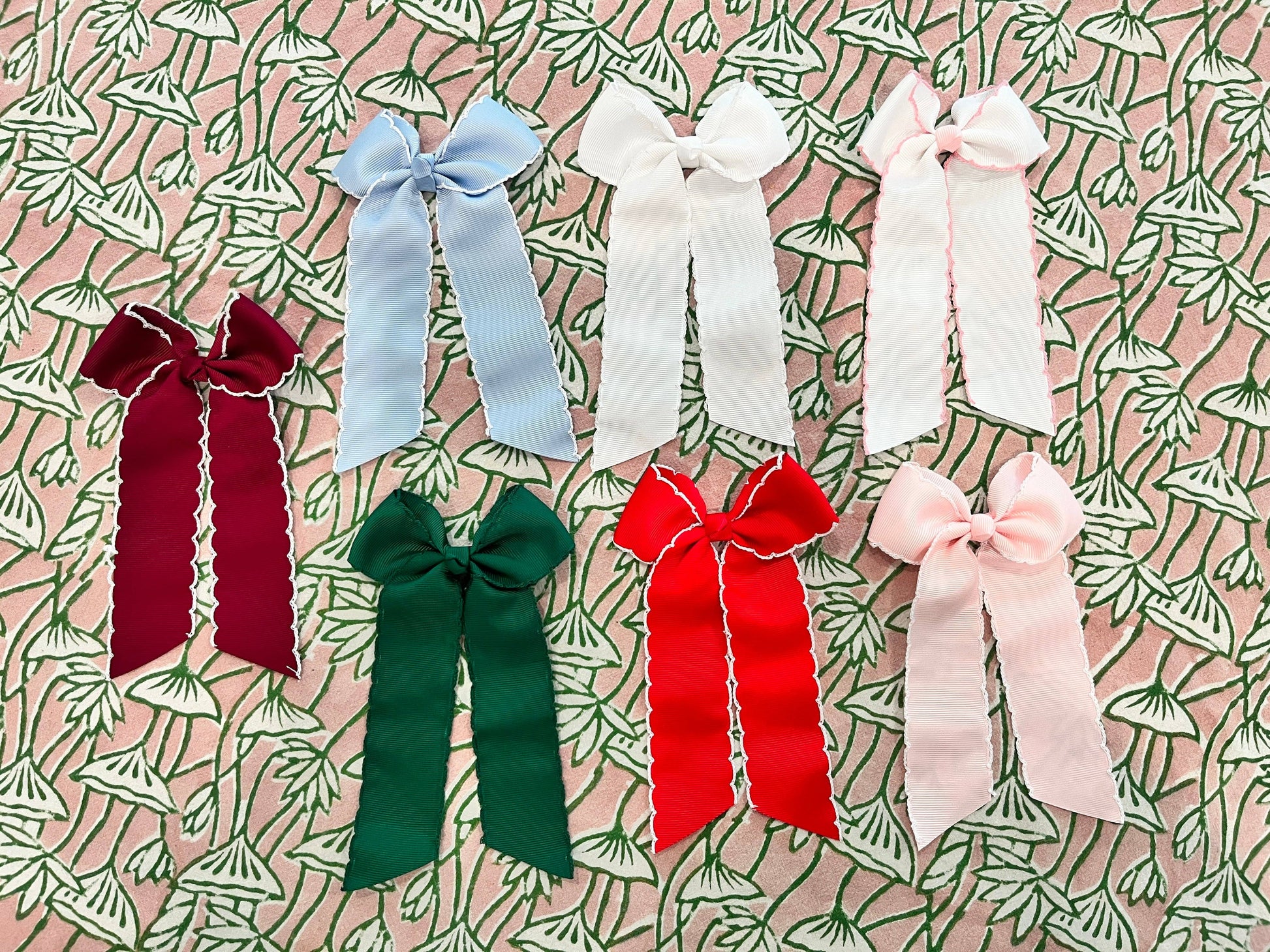 Our NEW medium grosgrain hair bow will complete any outfit for any occasion! Features moonstitch edging for the perfect finishing touch.