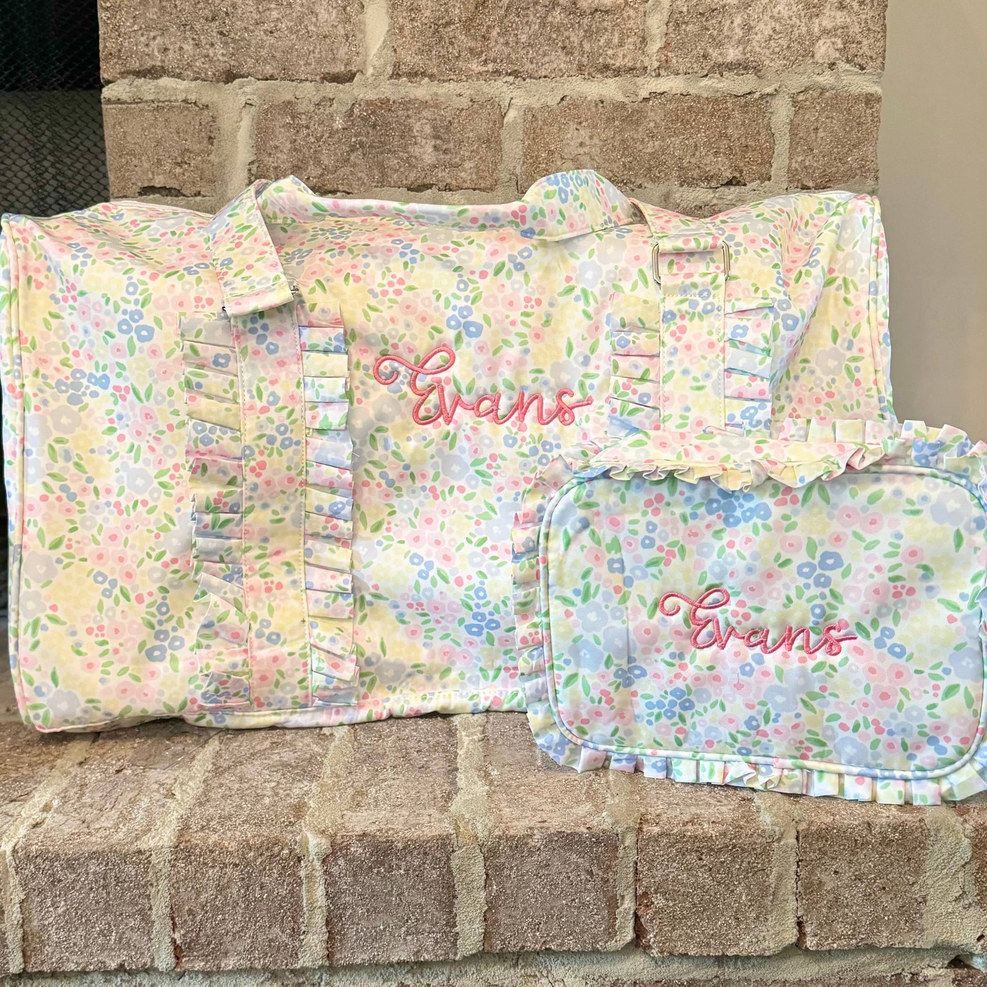 Pink Gingham Ruffle Nylon Duffle Bag